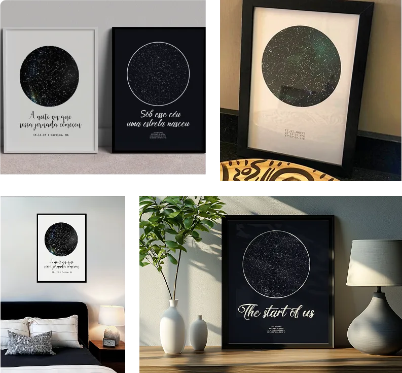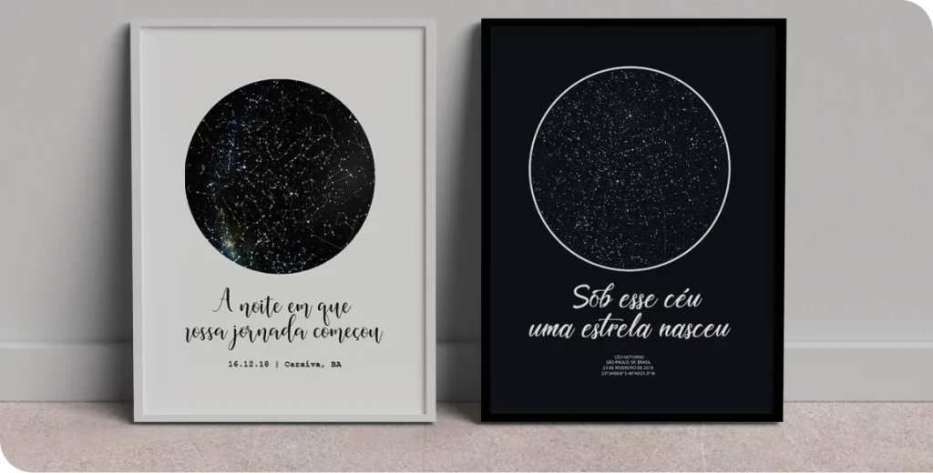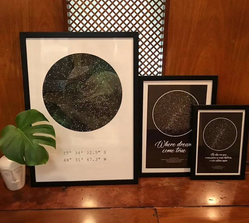 Nosso quadros não são (só) sobre astrologia. São feitos para qualquer um que ama olhar para o céu por horas porque contemplar a imensidão dá aquele friozinho na barriga. Que assim como Jack Kerouac em ‘On The Road’, deita no capô do carro para olhar as estrelas e sabe que elas são as testemunhas silenciosas dos momentos mais importantes que vivemos. Queremos eternizar isso num quadro, para que você nunca esqueça de olhar para o céu de verdade.